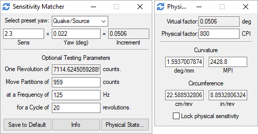 So when you move your mouse to the side, games will take the number of pixels the mouse cursor would have moved on your desktop, then multiply that by your mouse sensitivity value, and the yaw value. The result is the number of degrees that you turn. E.g: if you move ten pixels worth of movement with 1.5 sens in Quake, then it spins your character 10*1.5*0.022 = 0.33 degrees. Converting sensitivity from one game to another is incredibly easy if you know the yaw values for both games: <Game 1 Sens> = <Game 2 Sens> * <Game 2 Yaw> ÷ <Game 1 Yaw>.